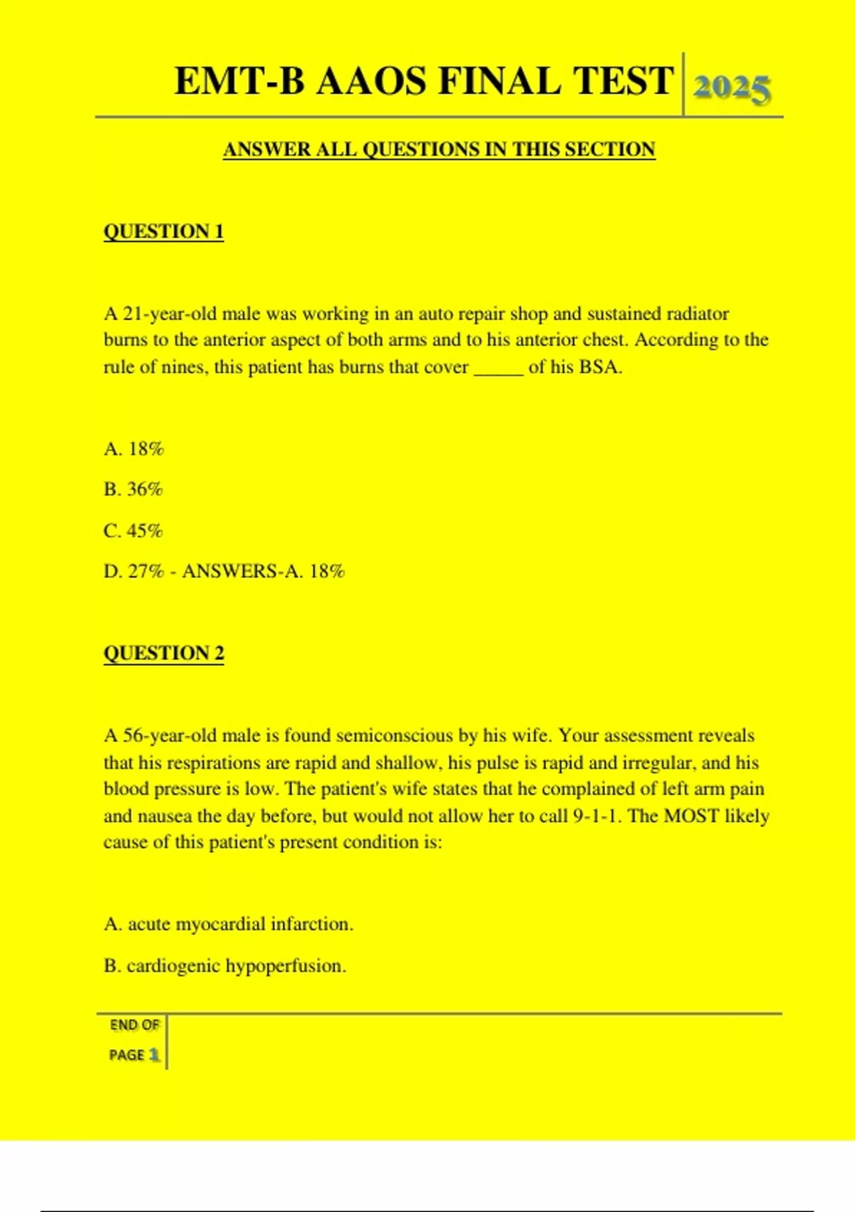 , EMT-B AAOS FINAL TEST 2025