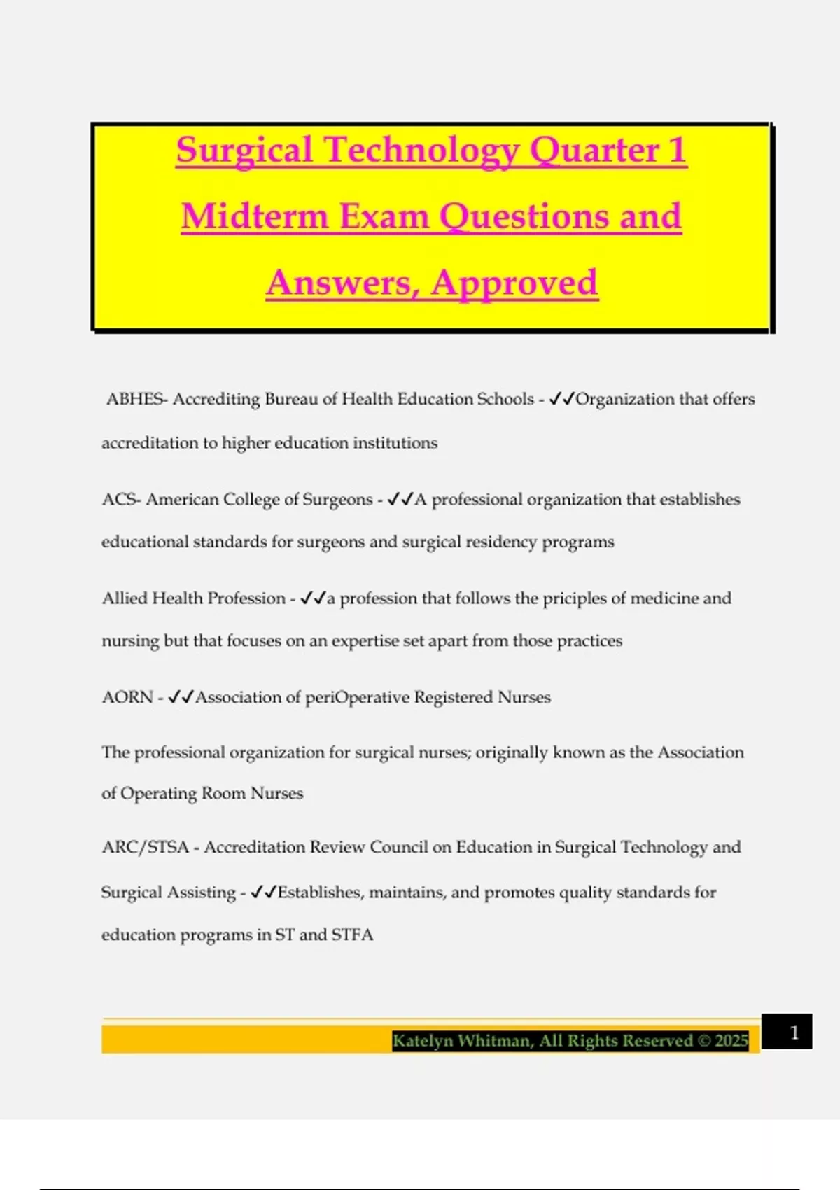 CST - ✔✔Certified Surgical Technologist