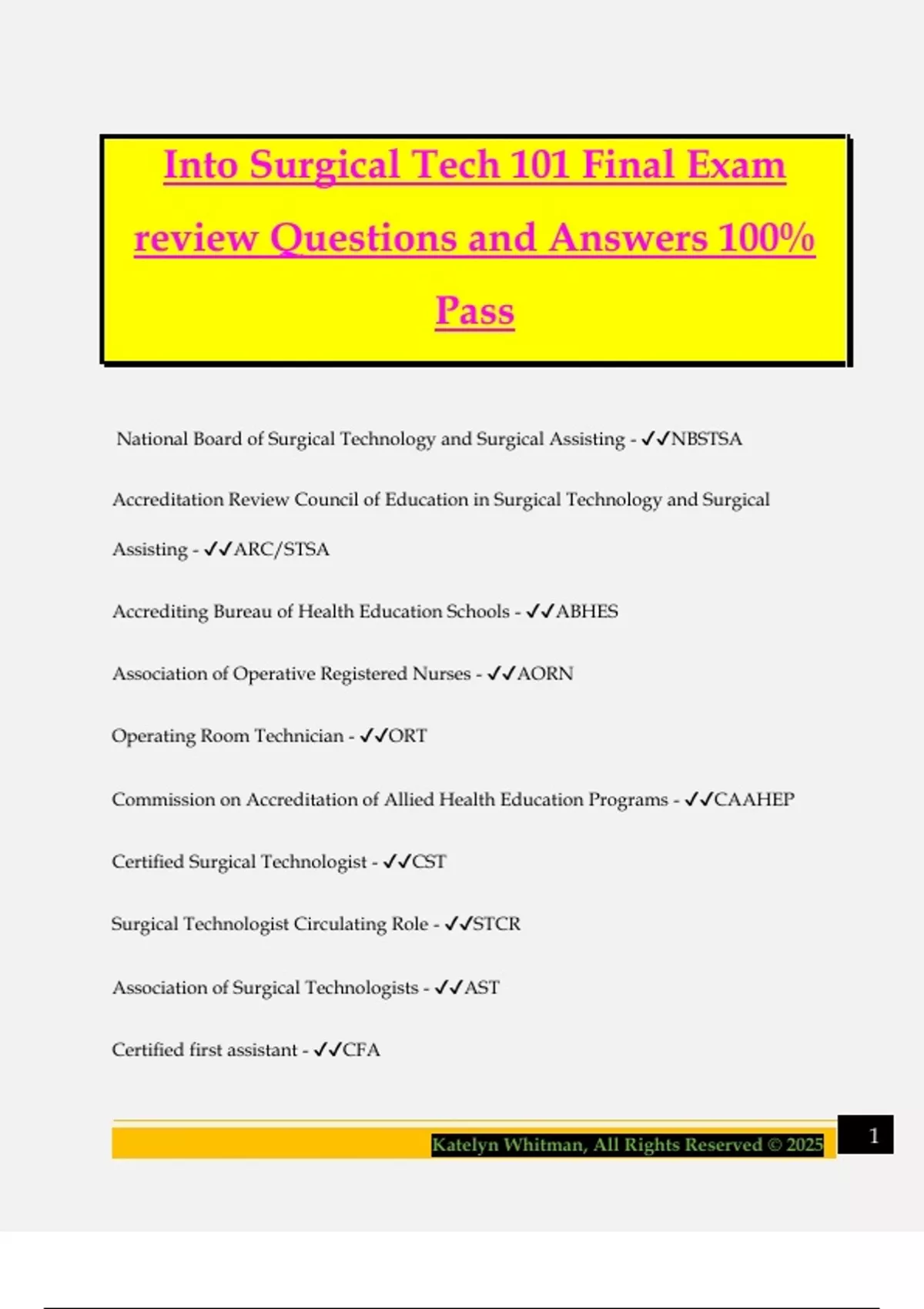 Certified Surgical Technologist - ✔✔CST