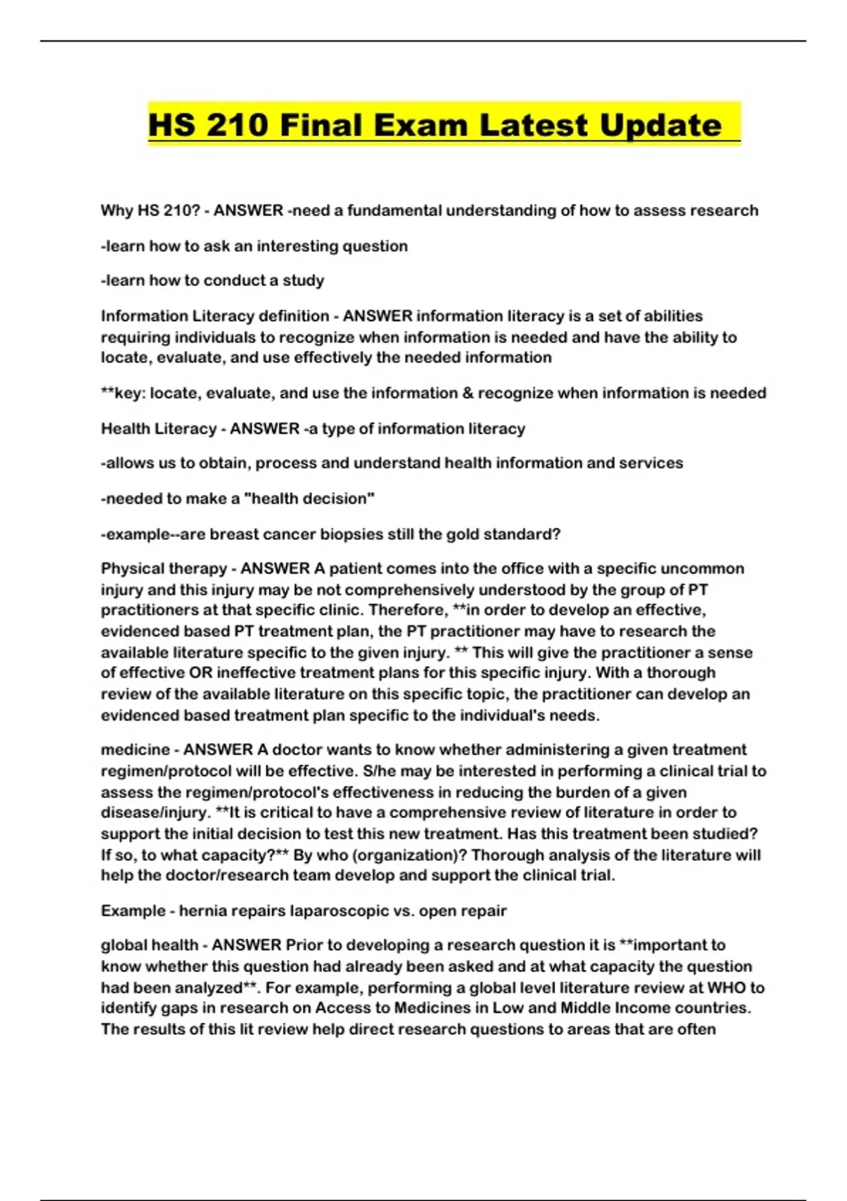 Why HS 210? - ANSWER -need a fundamental understanding of how to assess research
