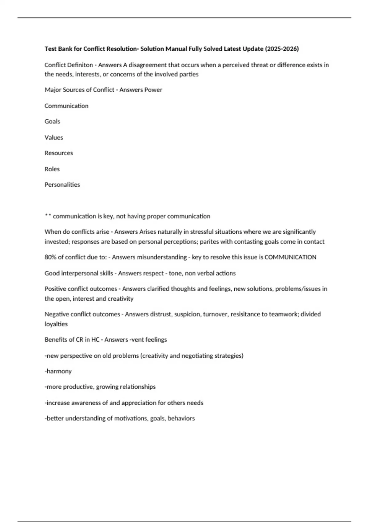 Test Bank for Conflict Resolution- Solution Manual Fully Solved Latest Update (2025-2026)