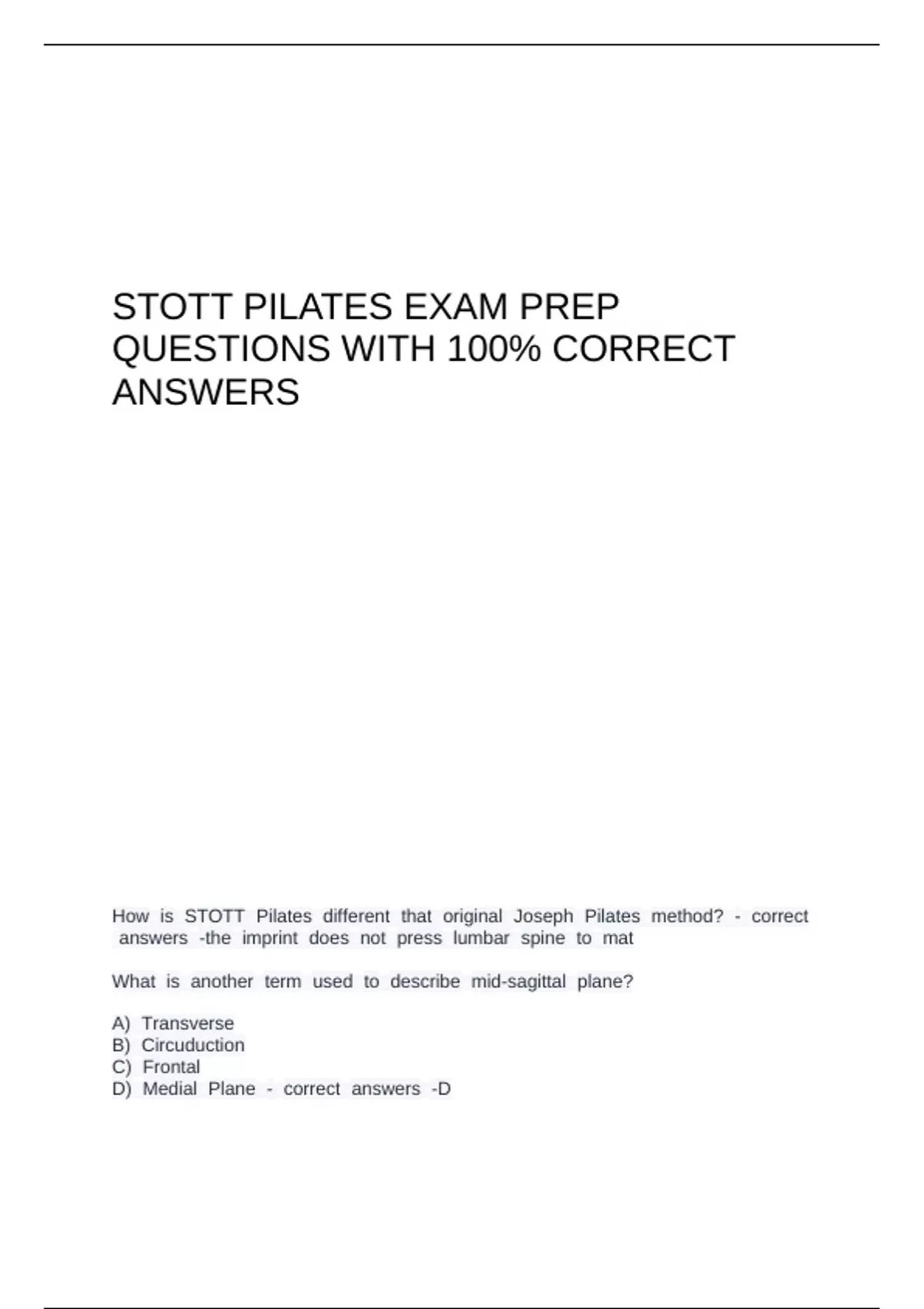 Stott Pilates Exam Prep Questions