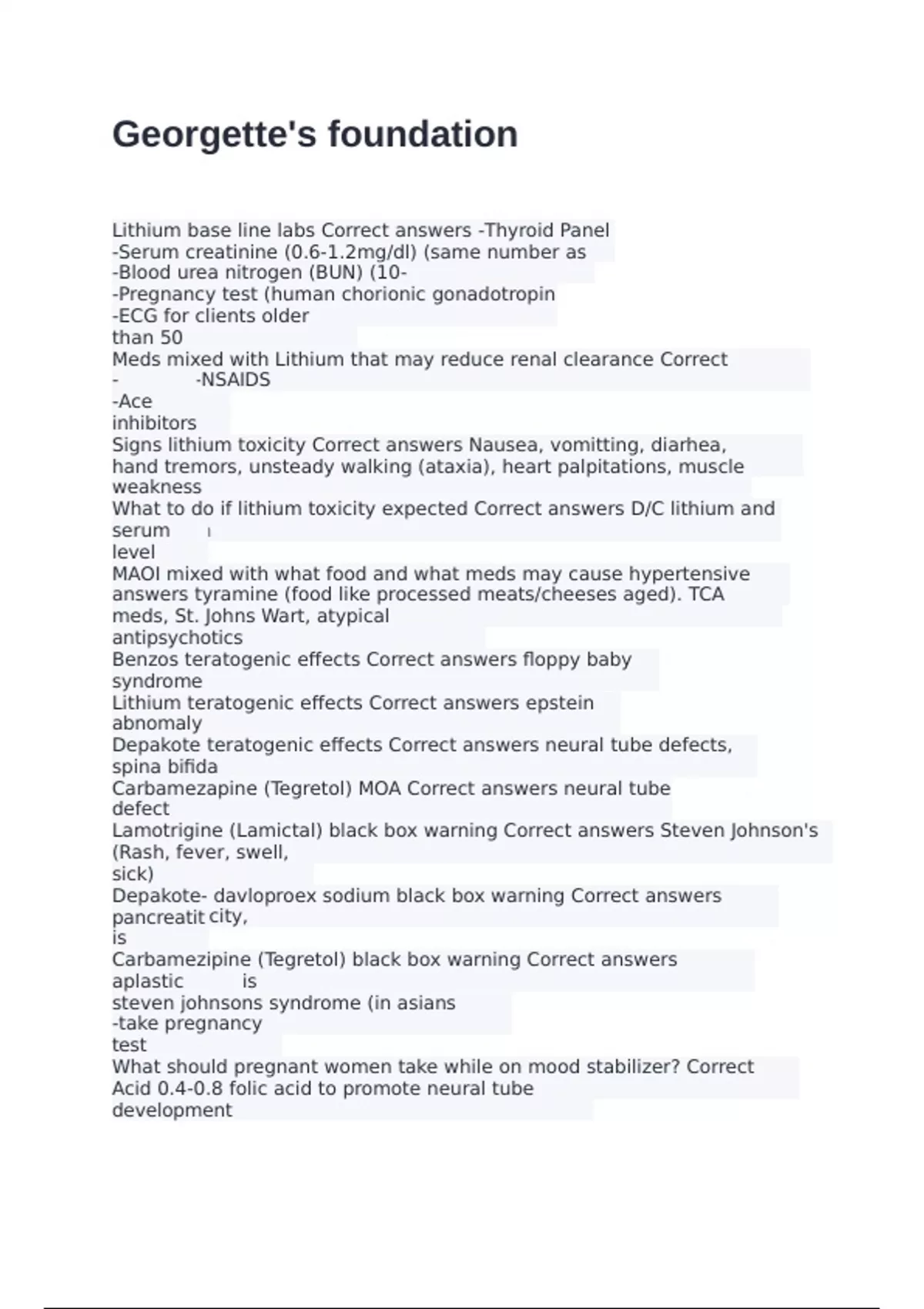 Lithium base line labs Correct answers -Thyroid Panel