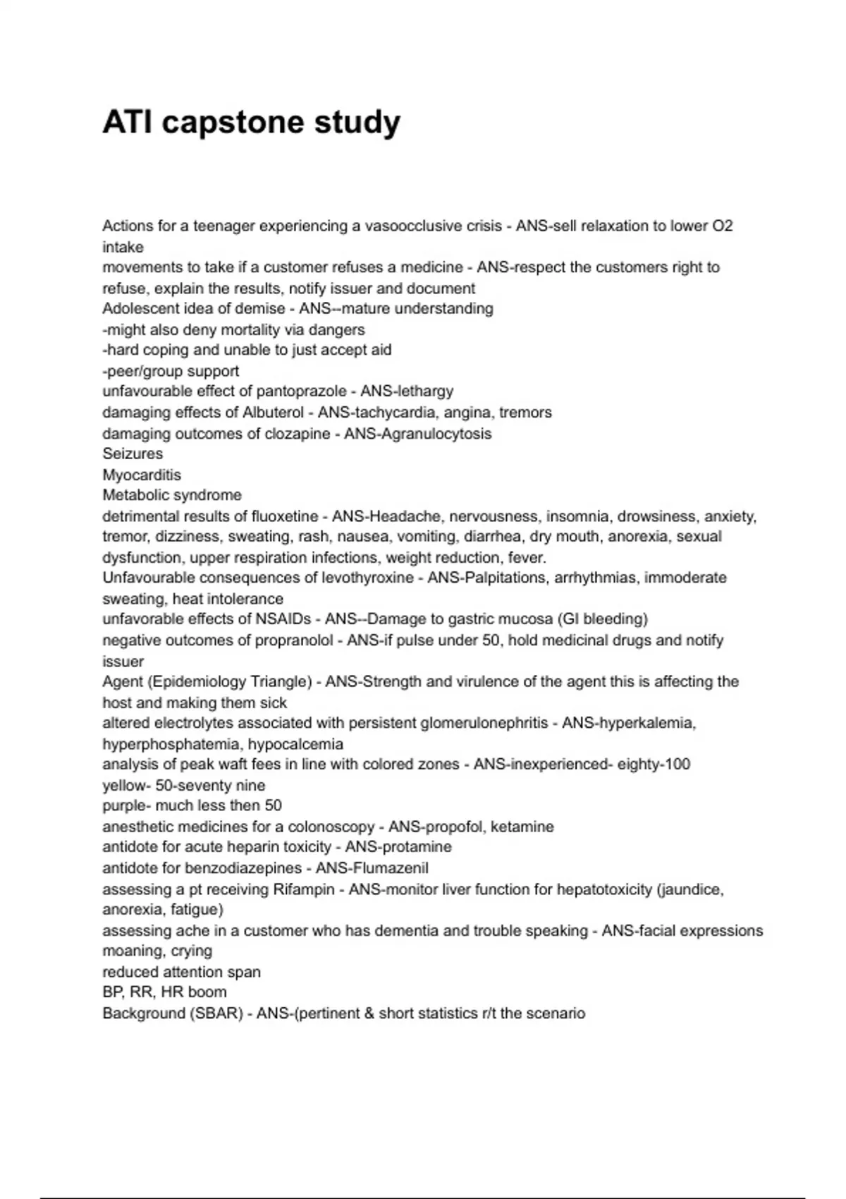 detrimental results of fluoxetine - ANS-Headache, nervousness, insomnia, drowsiness, anxiety,