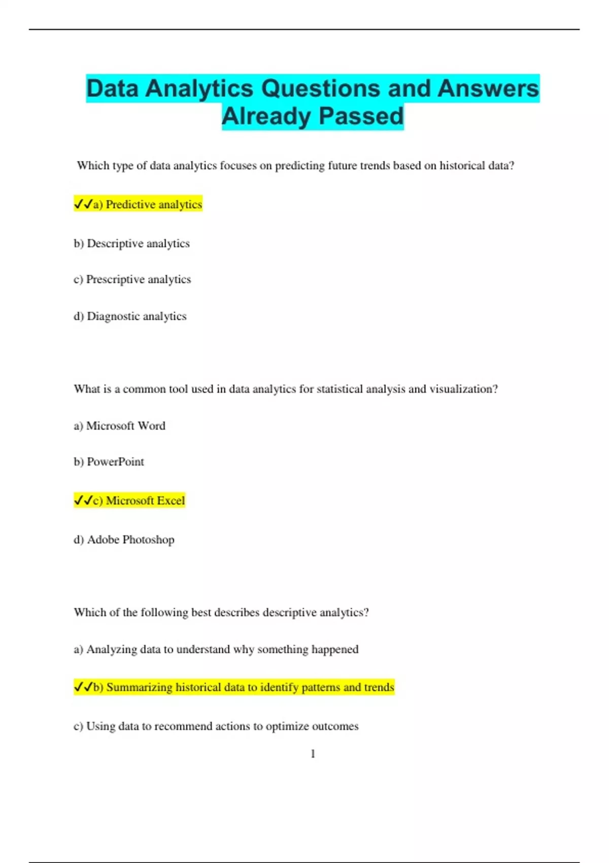Data Analytics Questions and Answers Already Passed