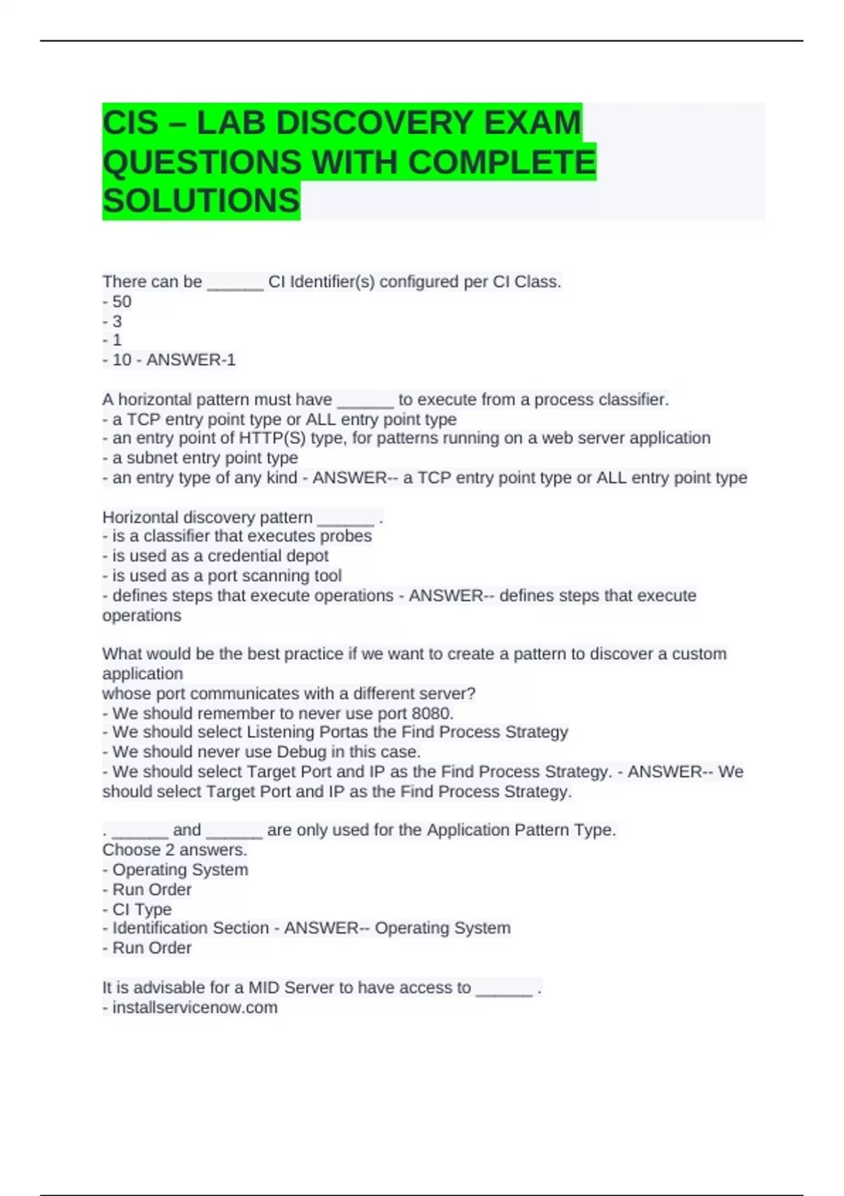 used - ANSWER-- operations allowing Discovery to find CIs on your network and tables