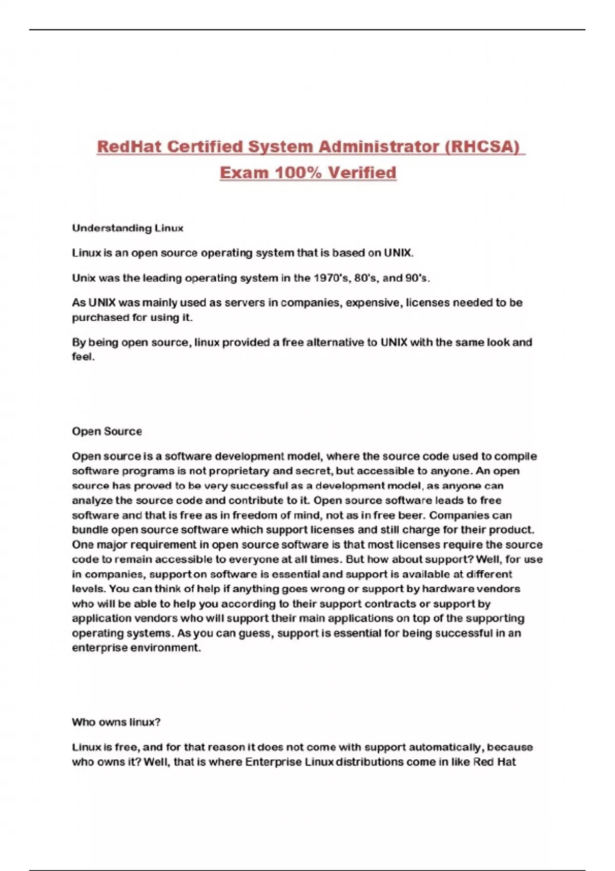 RedHat Certified System Administrator (RHCSA) Exam 100% Verified