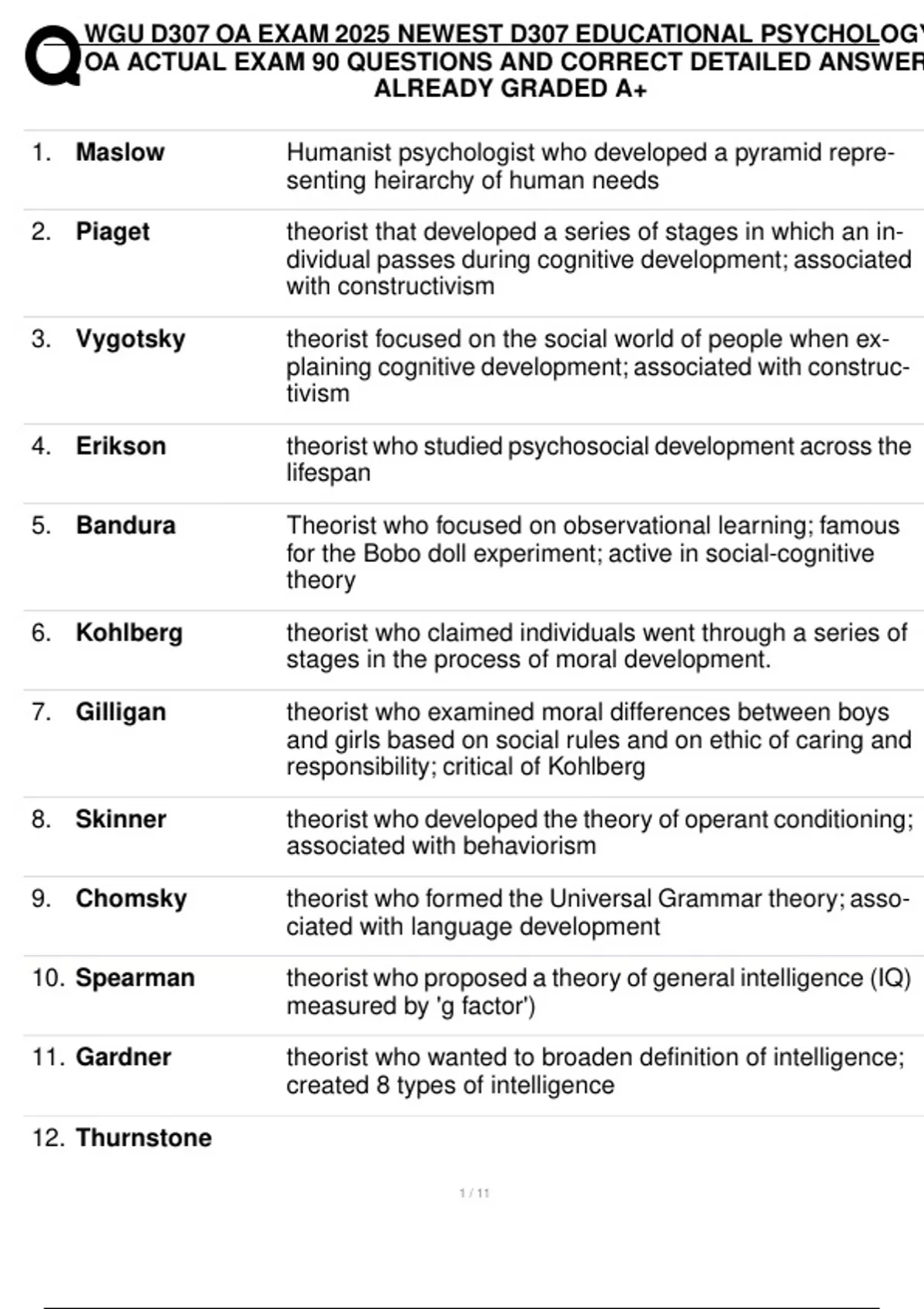 11. Gardner theorist who wanted to broaden definition of intelligence;