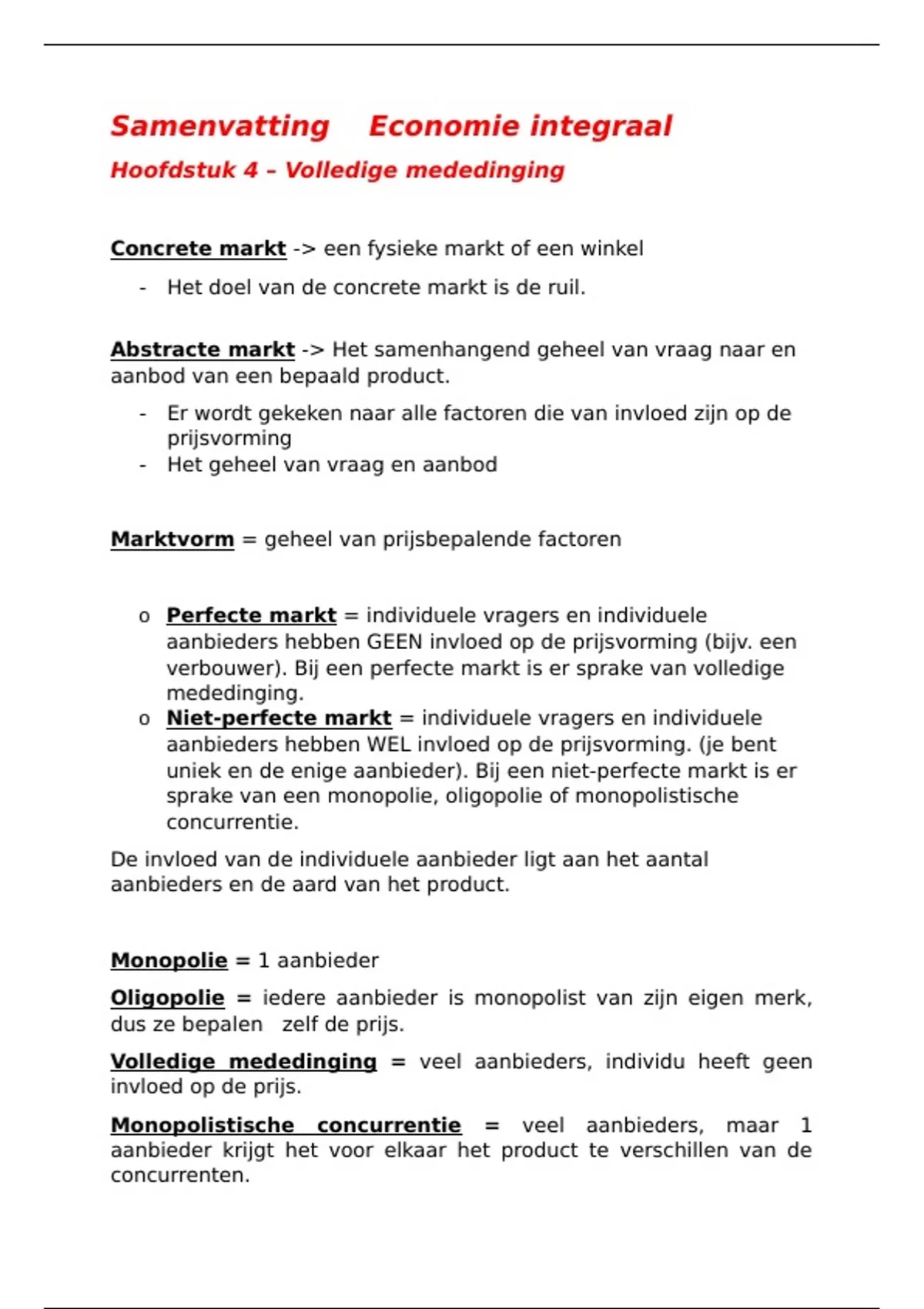 Samenvatting Economie integraal