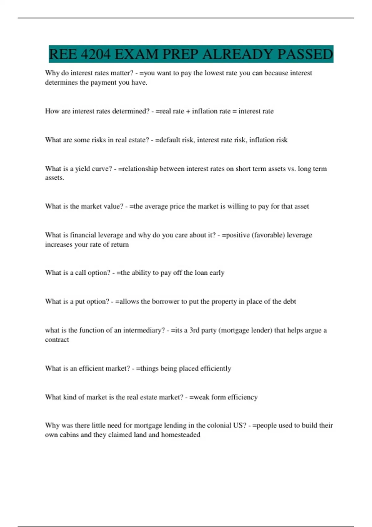 REE 4204 EXAM PREP ALREADY PASSED