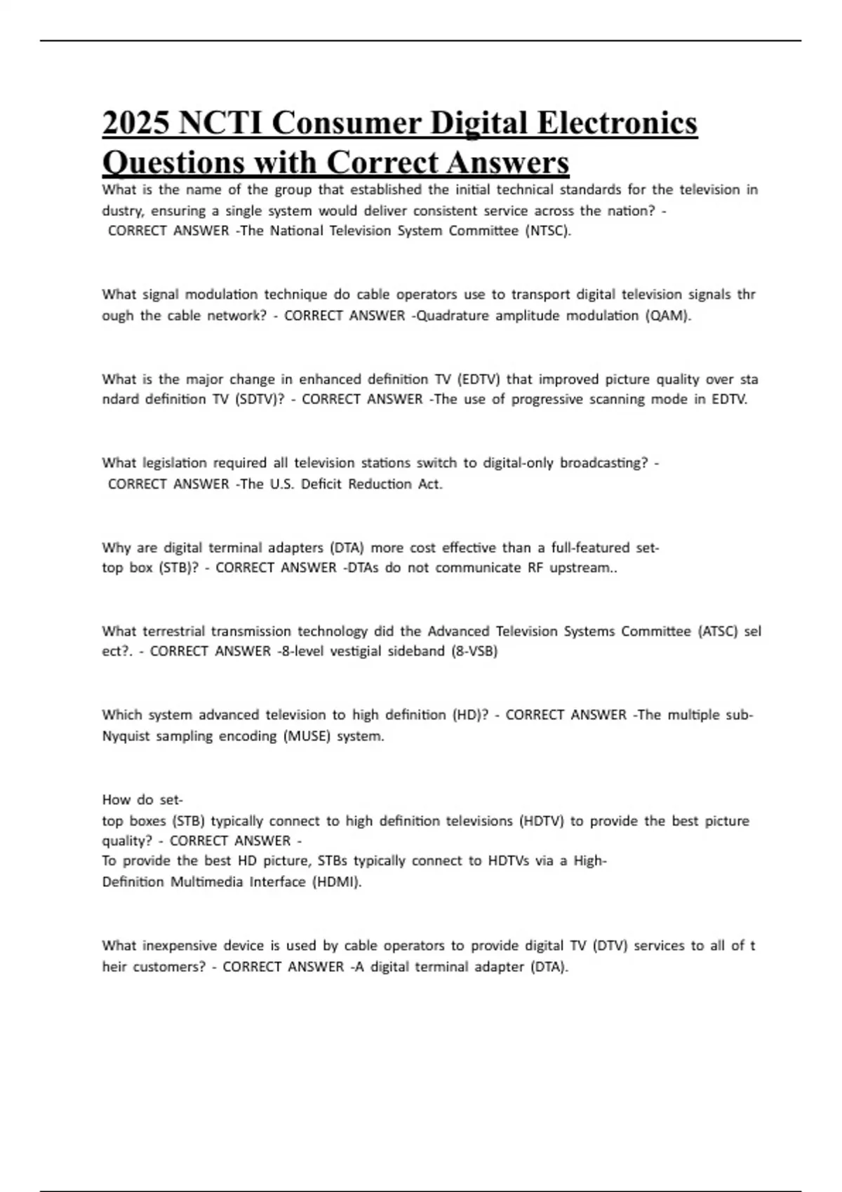 2025 NCTI Consumer Digital Electronics Questions with Correct Answers