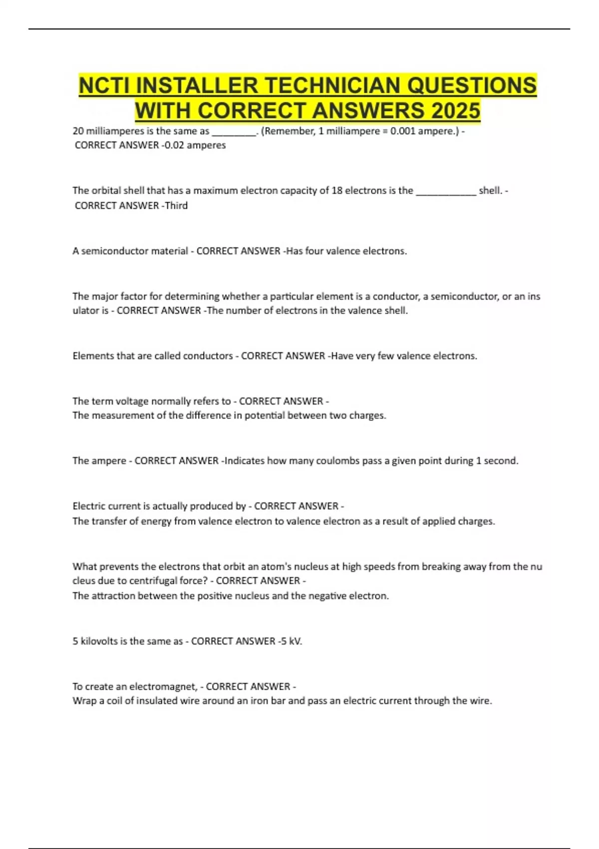 NCTI INSTALLER TECHNICIAN QUESTIONS