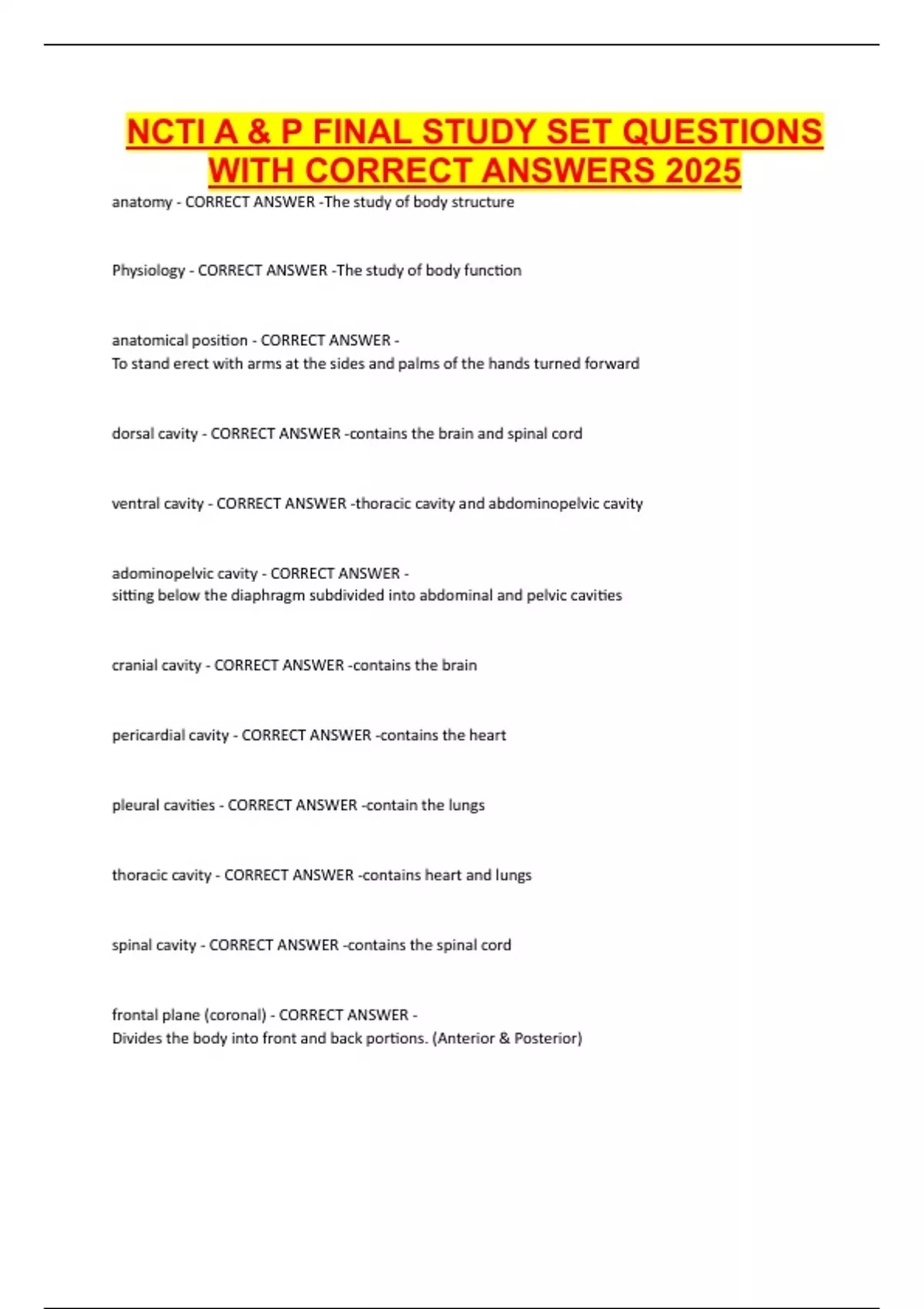 NCTI A & P FINAL STUDY SET QUESTIONS WITH CORRECT ANSWERS 2025