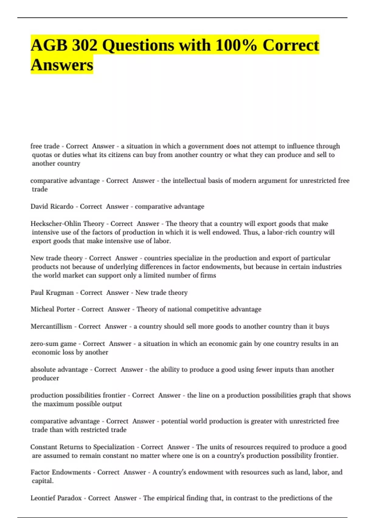 AGB 302 Questions with 100% Correct