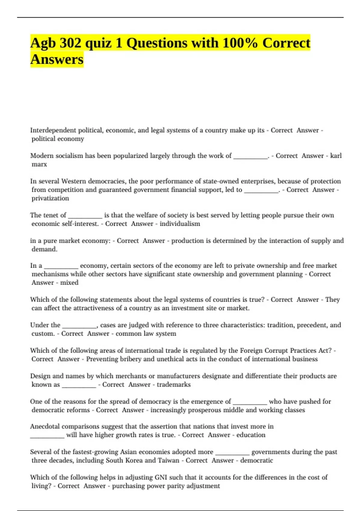 Agb 302 quiz 1 Questions with 100- Correct Answers.