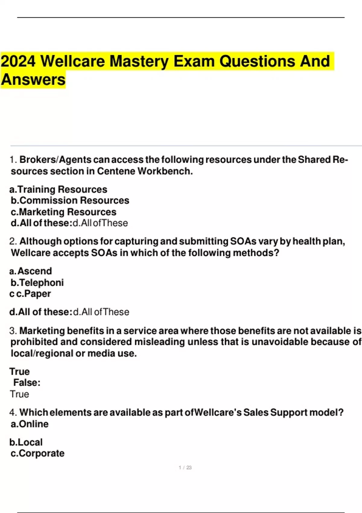 4. Which elements are available as part ofWellcare's Sales Support model?