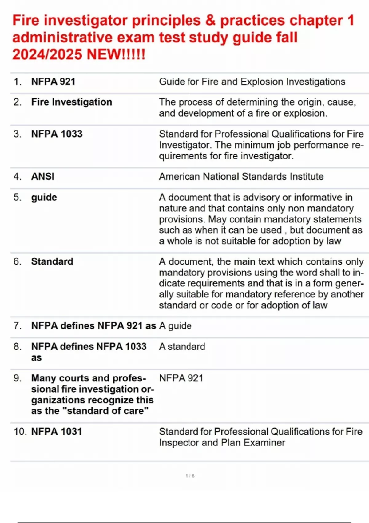 Fire investigator principles & practices chapter 1 administrative exam test study guide fall 2024/2025 NEW!!!!!