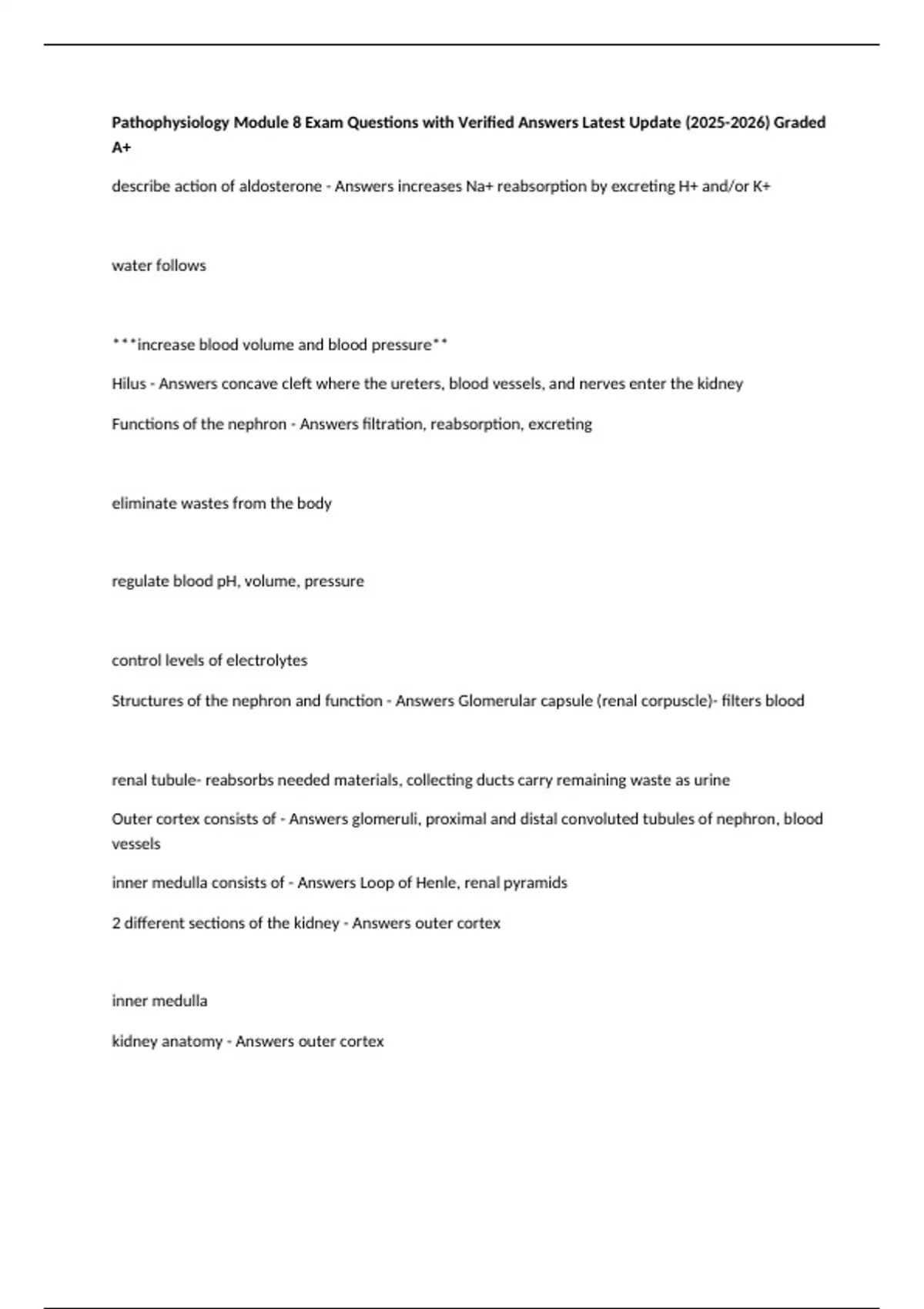 describe action of aldosterone - Answers increases Na+ reabsorption by excreting H+ and/or K+