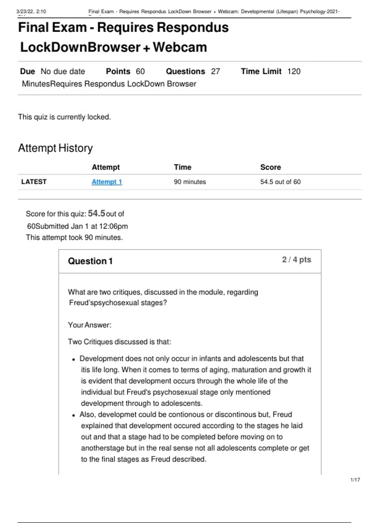 uj Final Exam - Requires Respondus LockDown Browser + Webcam: Developmental (Lifespan) Psychology-2021-