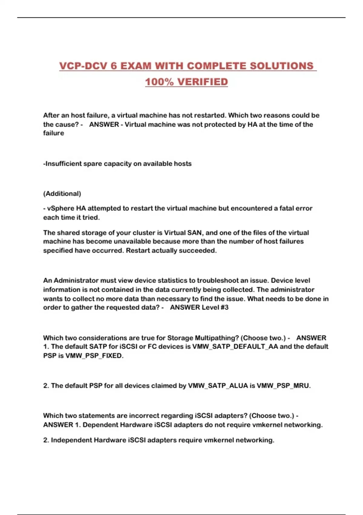 VCP-DCV 6 EXAM WITH COMPLETE SOLUTIONS