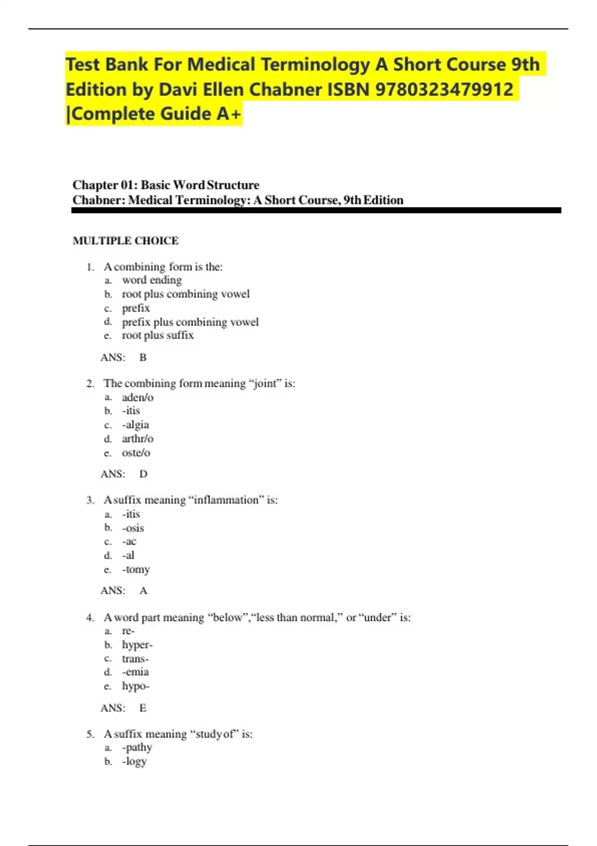 Chabner: Medical Terminology: A Short Course, 9th Edition