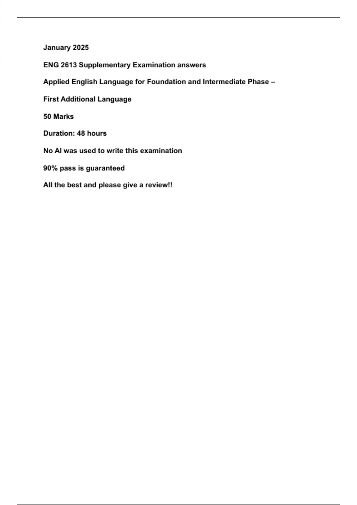 This document contains answers for ENG2613 supplementary examination answers for January/February 2025. All answers are available in the document, no AI was used to generate answers for this examination and a 90% pass is guaranteed. Please paraphrase and use your own words. All the best and contact us if you have any concerns.