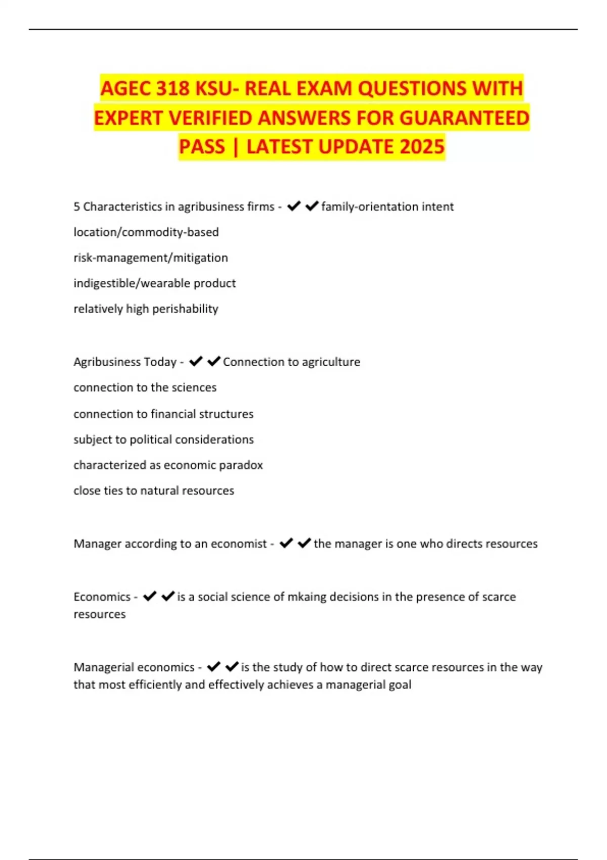 AGEC 318 KSU- REAL EXAM QUESTIONS WITH EXPERT VERIFIED ANSWERS FOR GUARANTEED PASS | LATEST UPDATE 2025