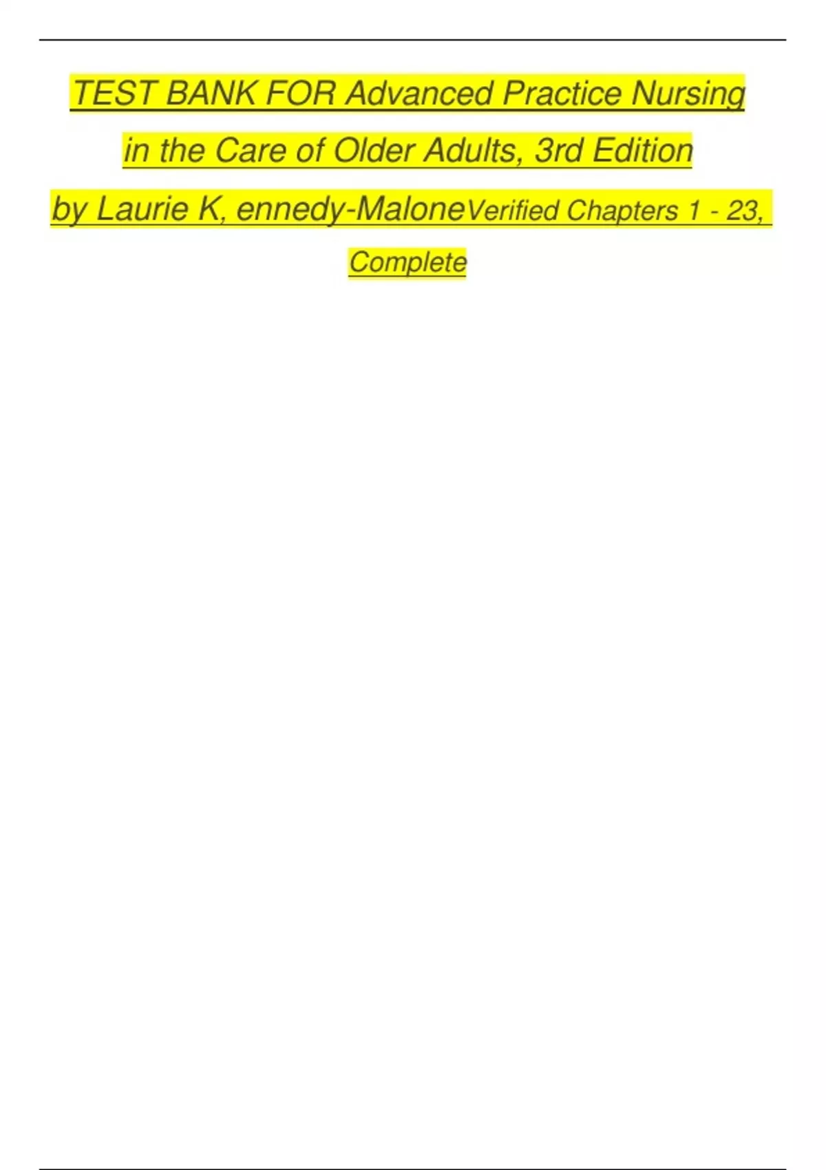 TEST BANK FOR Advanced Practice Nursing in the Care of Older Adults, 3rd Edition by Laurie K, ennedy-MaloneVerified Chapters 1 - 23, Complete