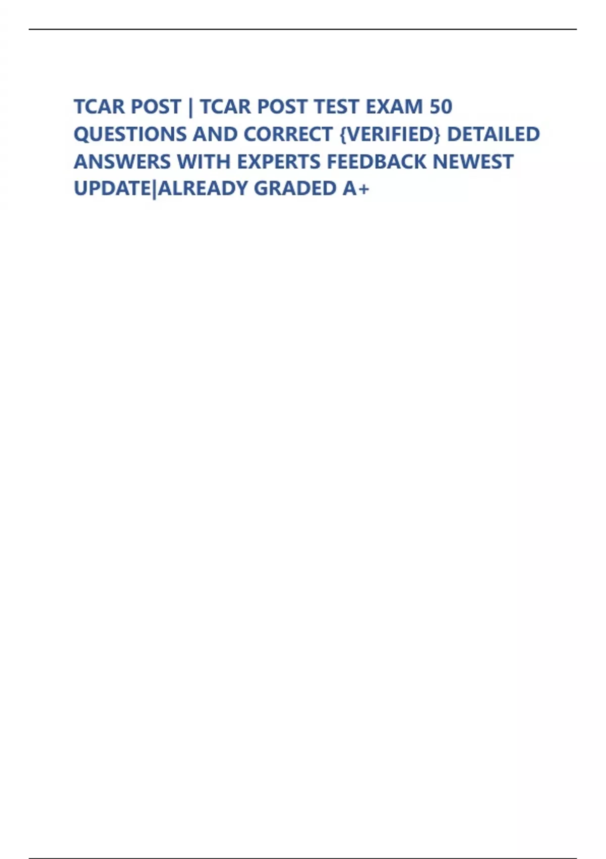 TCAR POST | TCAR POST TEST EXAM 50 QUESTIONS AND CORRECT {VERIFIED} DETAILED ANSWERS WITH EXPERTS FEEDBACK NEWEST UPDATE|ALREADY GRADED A+