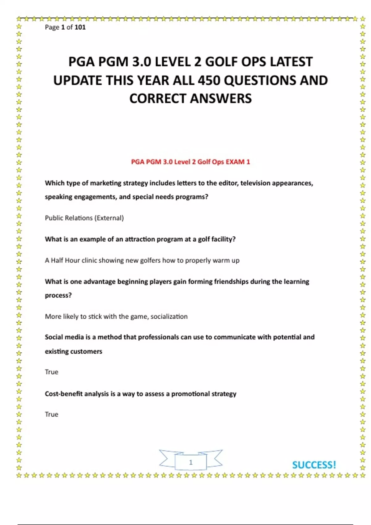PGA PGM 3.0 LEVEL 2 GOLF OPS LATEST UPDATE THIS YEAR ALL 450 QUESTIONS AND CORRECT ANSWERS