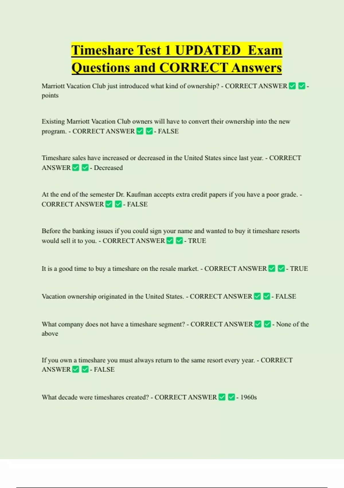 It is a good time to buy a timeshare on the resale market. - CORRECT ANSWER - TRUE
