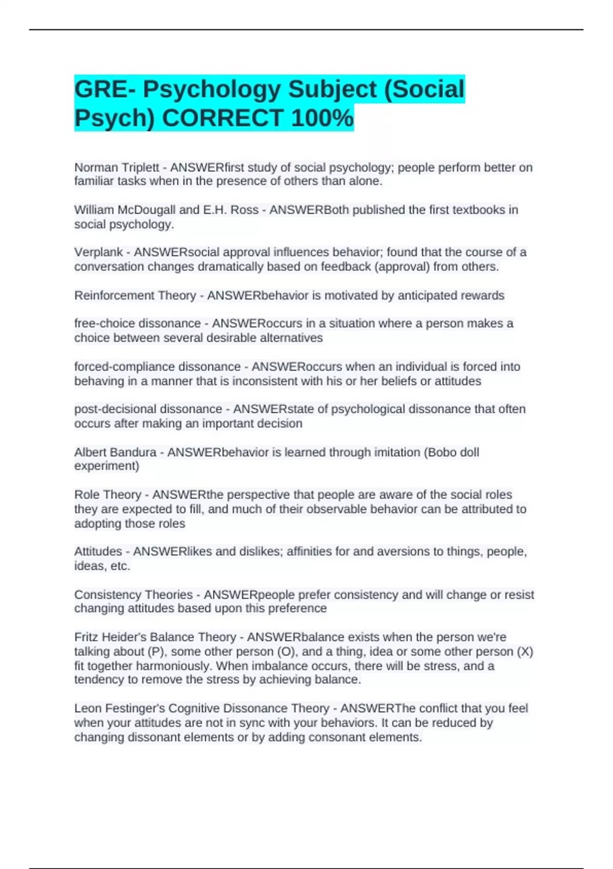 GRE- Psychology Subject (Social Psych) CORRECT 100%