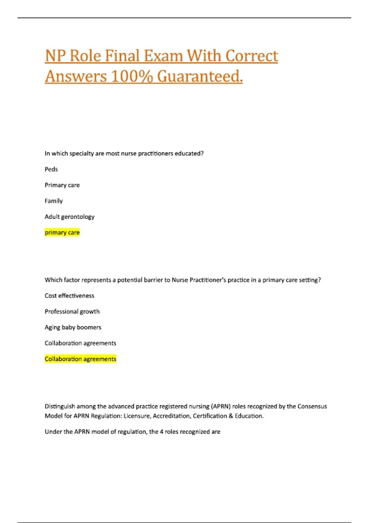 NP Role Final Exam With Correct Answers 100% Guaranteed.