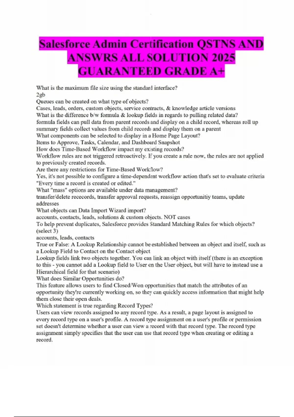Salesforce Admin Certification QSTNS AND ANSWRS ALL SOLUTION 2025 GUARANTEED GRADE A+