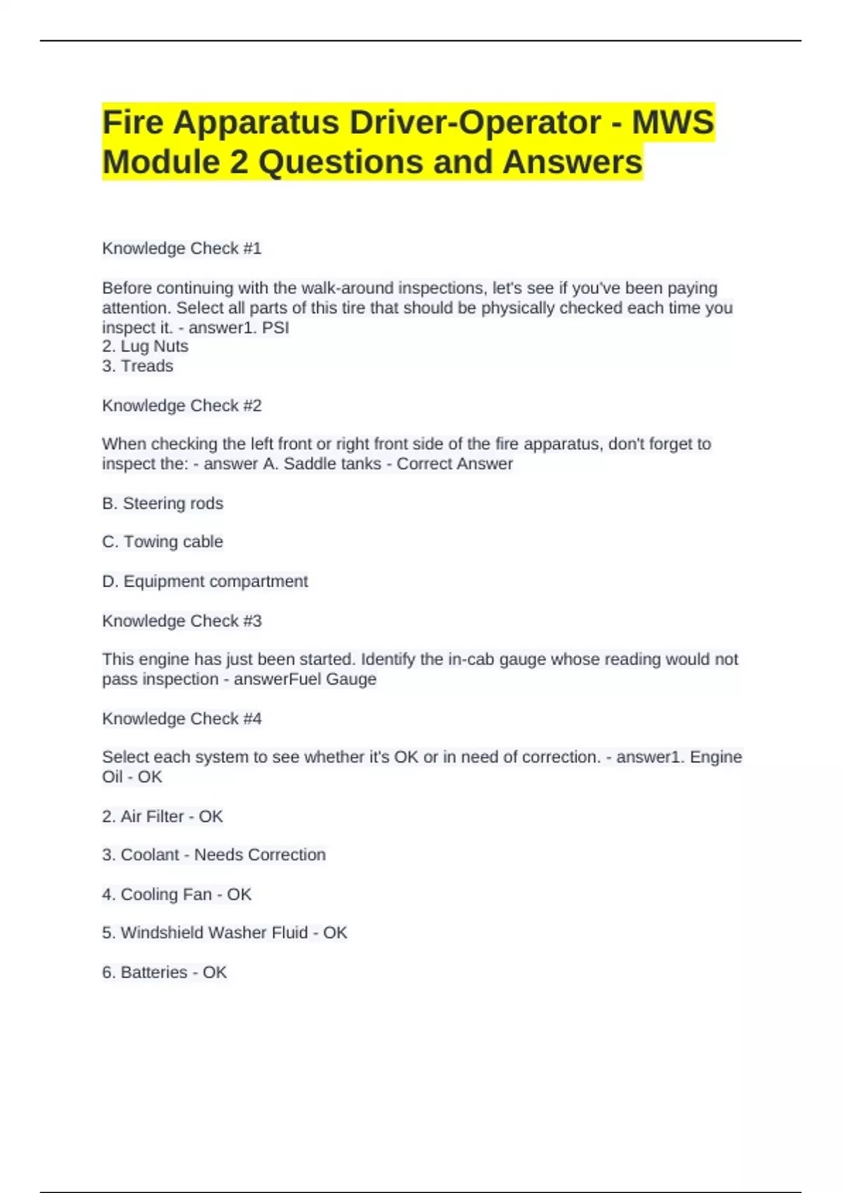 Select each system to see whether it's OK or in need of correction. - answer1. Engine