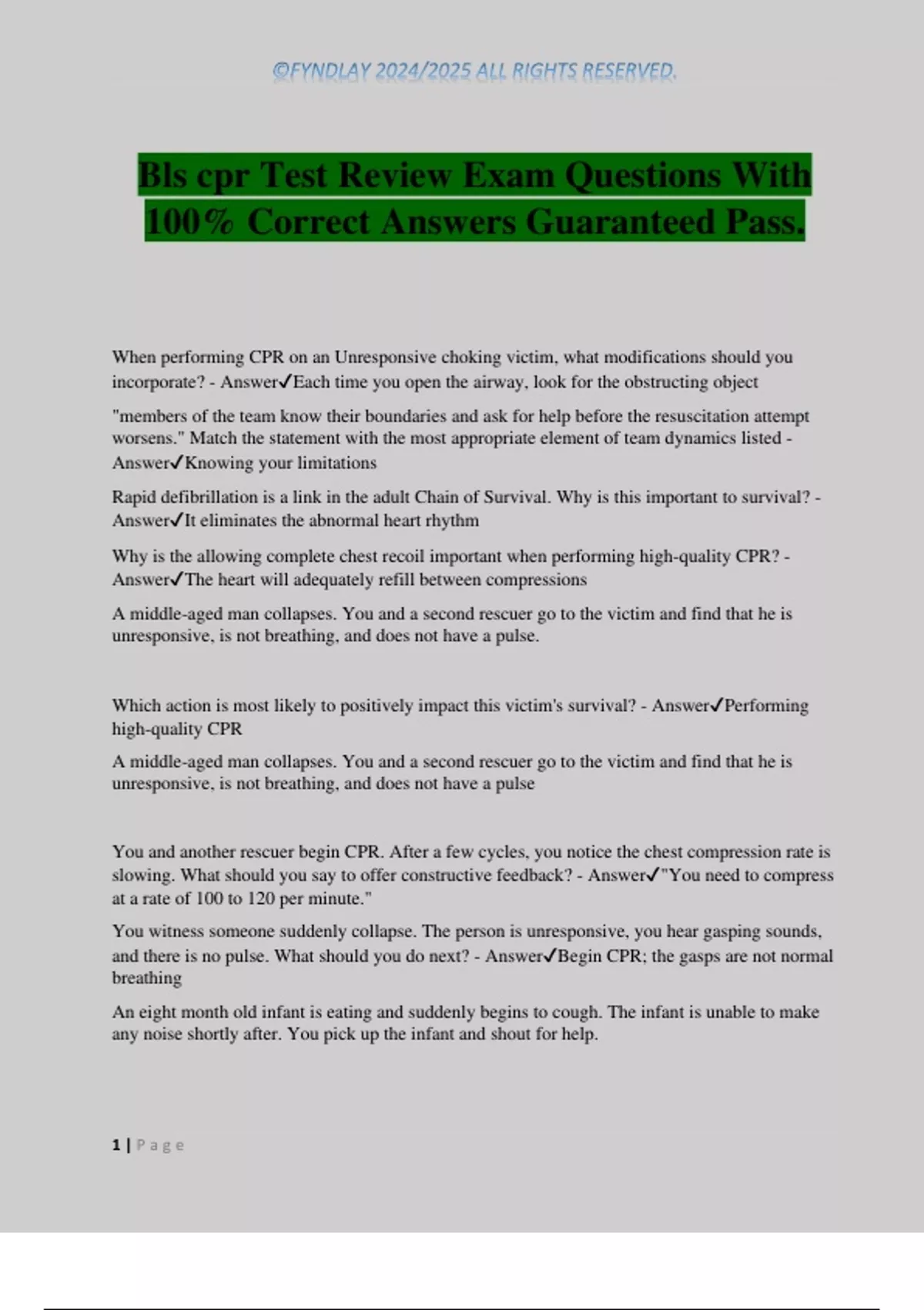 Bls cpr Test Review Exam Questions With 100% Correct Answers Guaranteed Pass.