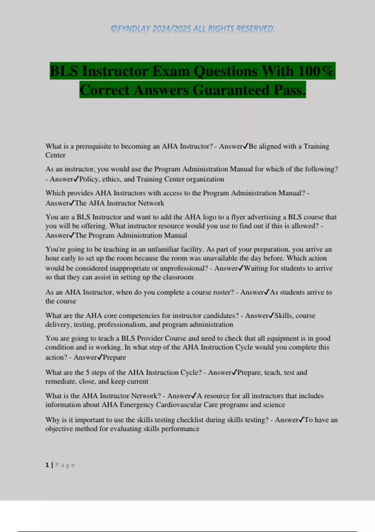 What is the AHA Instructor Network? - Answer✔A resource for all instructors that includes