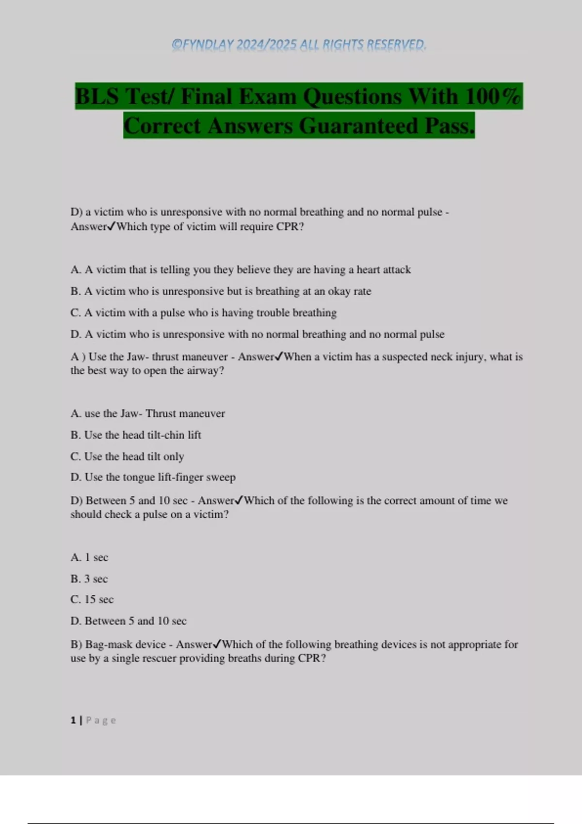 A ) Use the Jaw- thrust maneuver - Answer✔When a victim has a suspected neck injury, what is