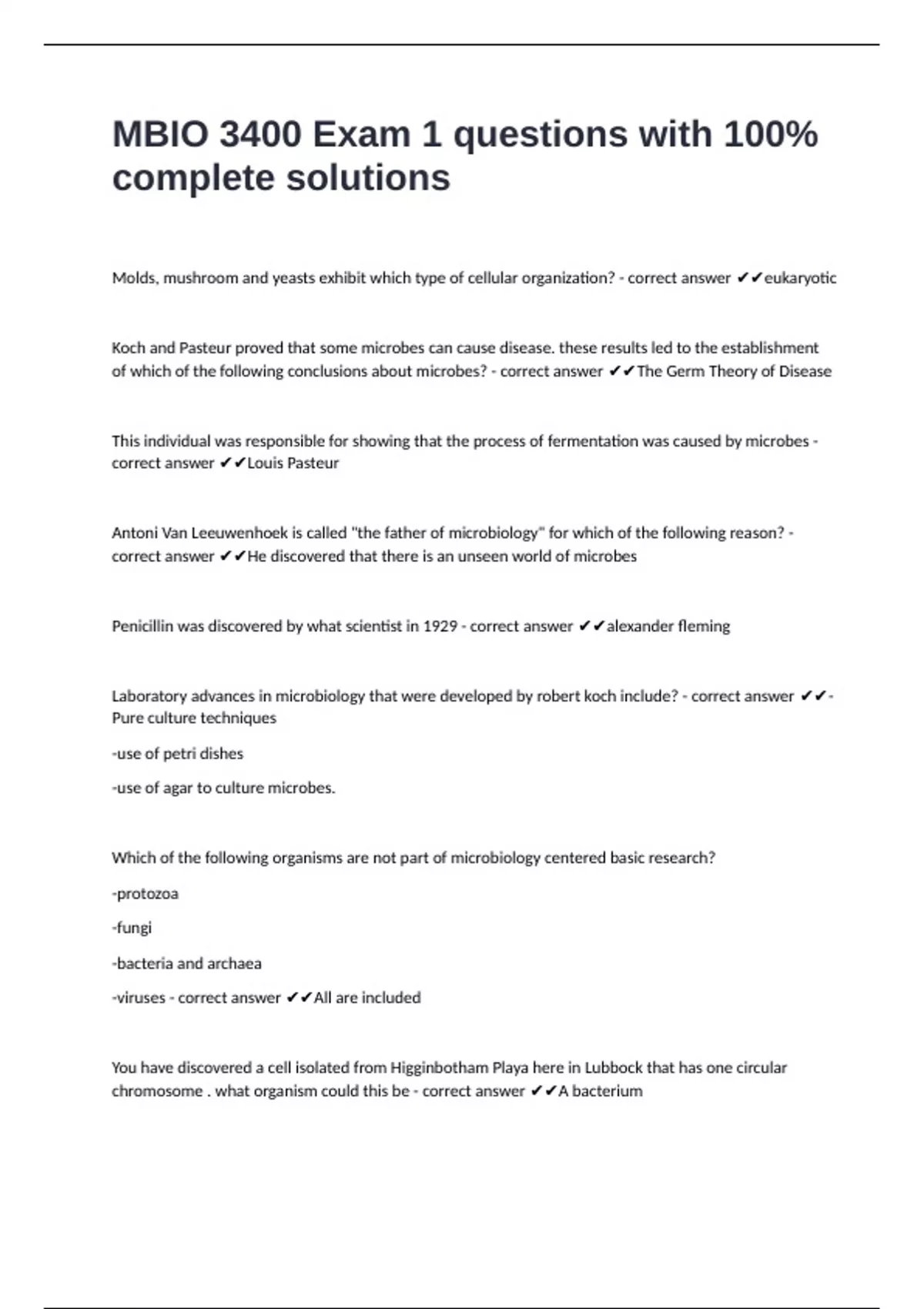 MBIO 3400 Exam 1 questions with 100%