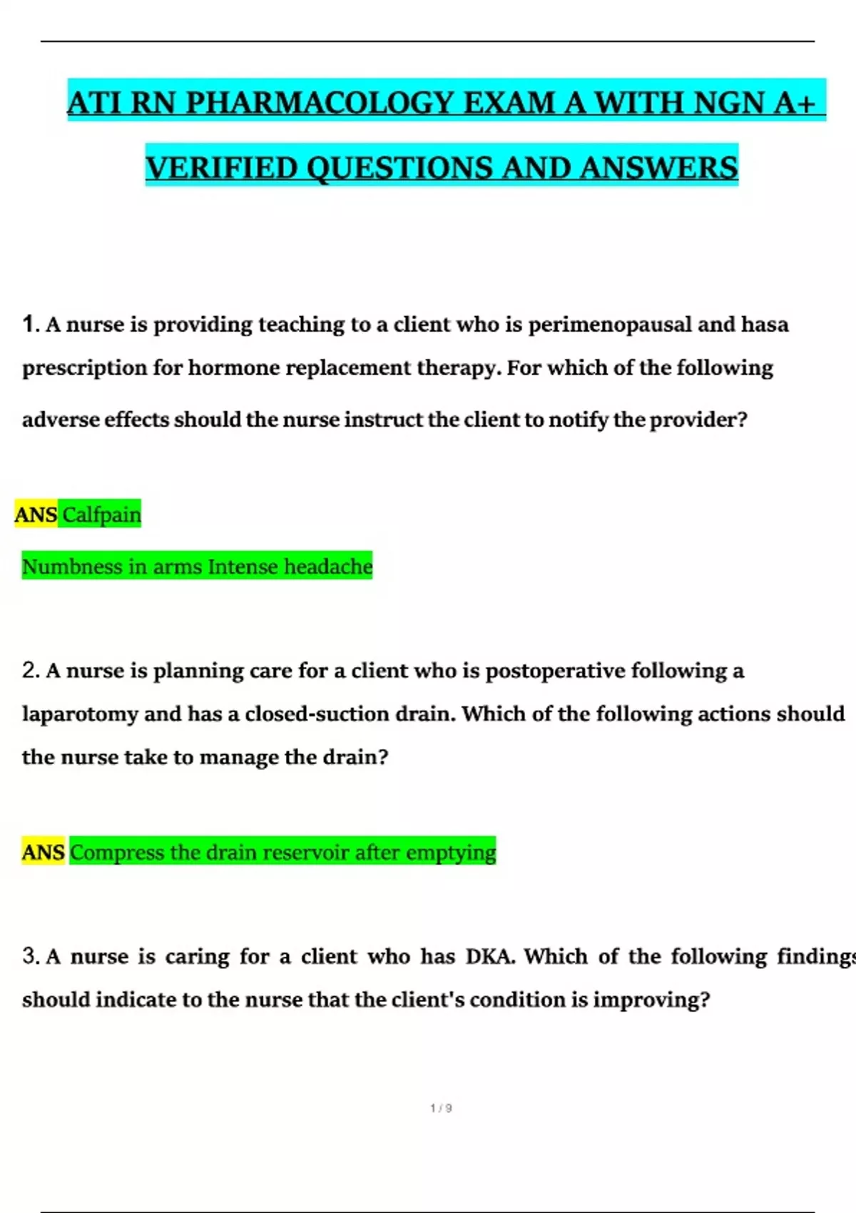 ATI RN PHARMACOLOGY EXAM A WITH A+ VERIFIED QUESTIONS AND ANSWERS ( V2 )