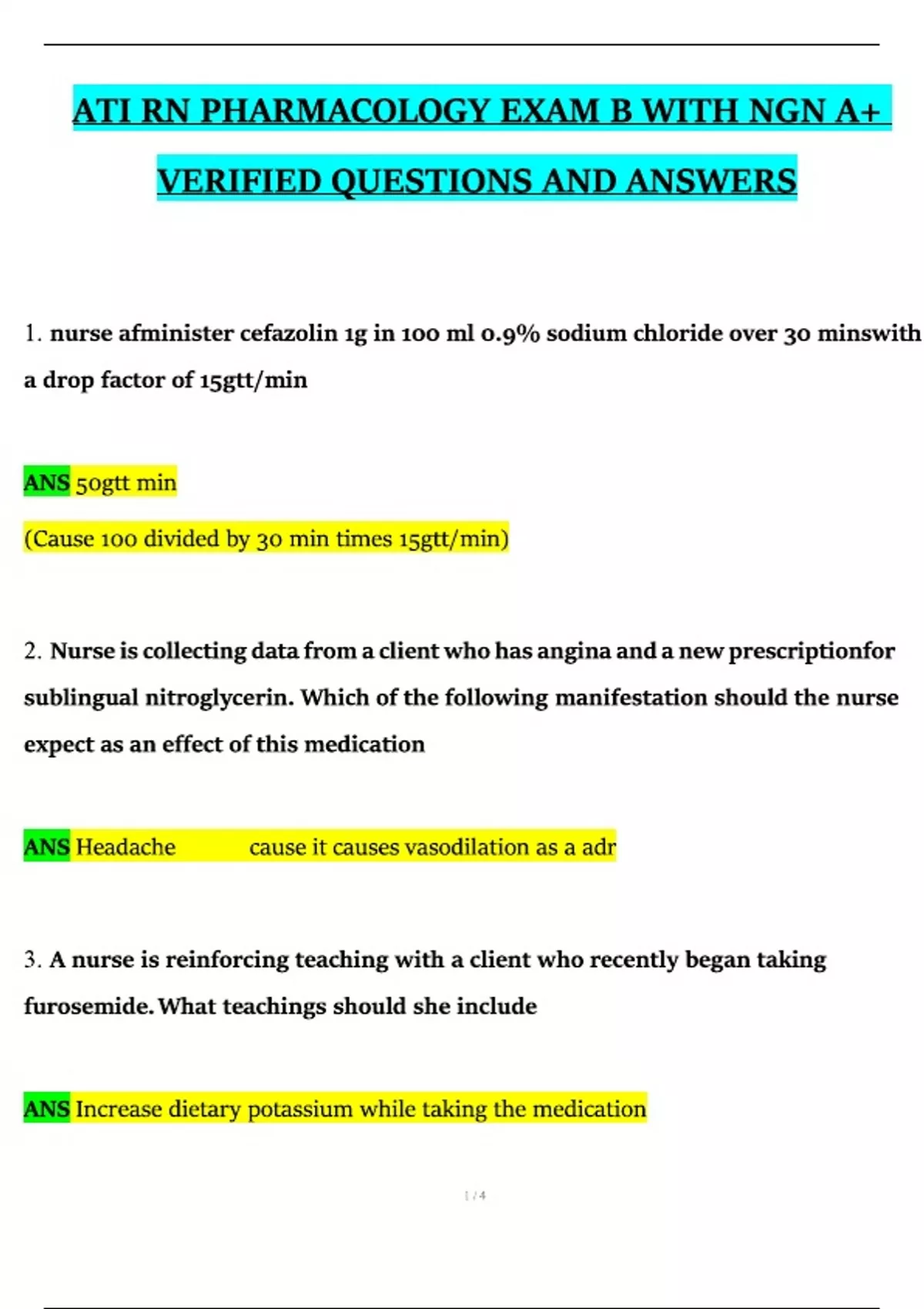 ATI RN PHARMACOLOGY EXAM B WITH A+ VERIFIED QUESTIONS AND ANSWERS ( V3 )