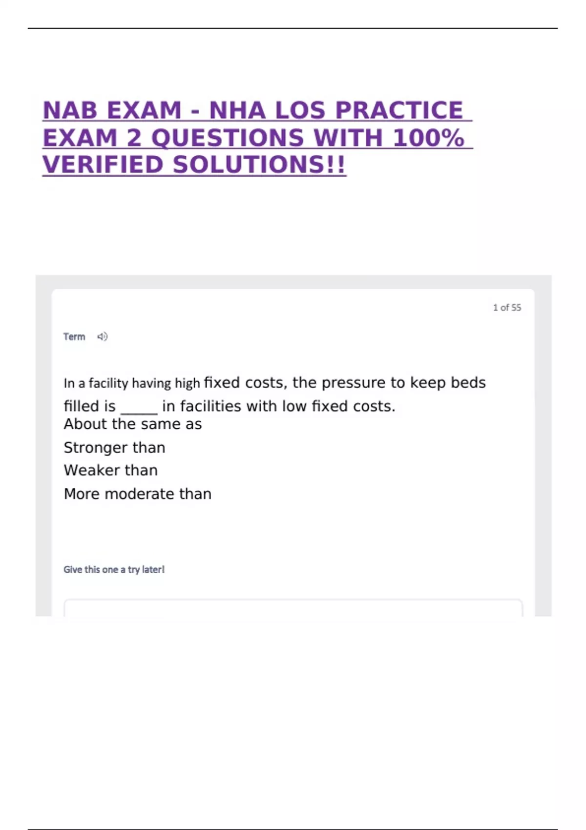 NAB EXAM - NHA LOS PRACTICE EXAM 2 QUESTIONS WITH 100% VERIFIED SOLUTIONS!!