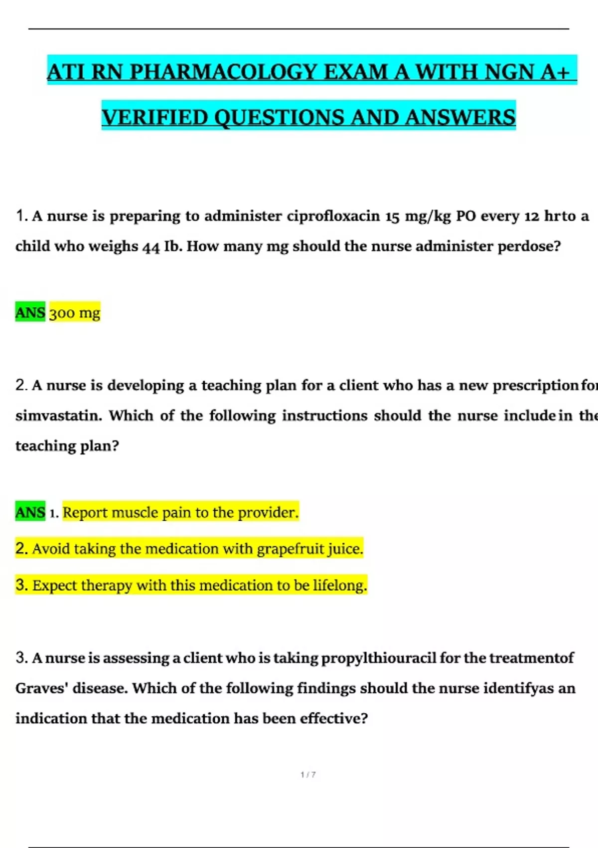 ATI RN PHARMACOLOGY EXAM A WITH A+ VERIFIED QUESTIONS AND ANSWERS ( V5 )