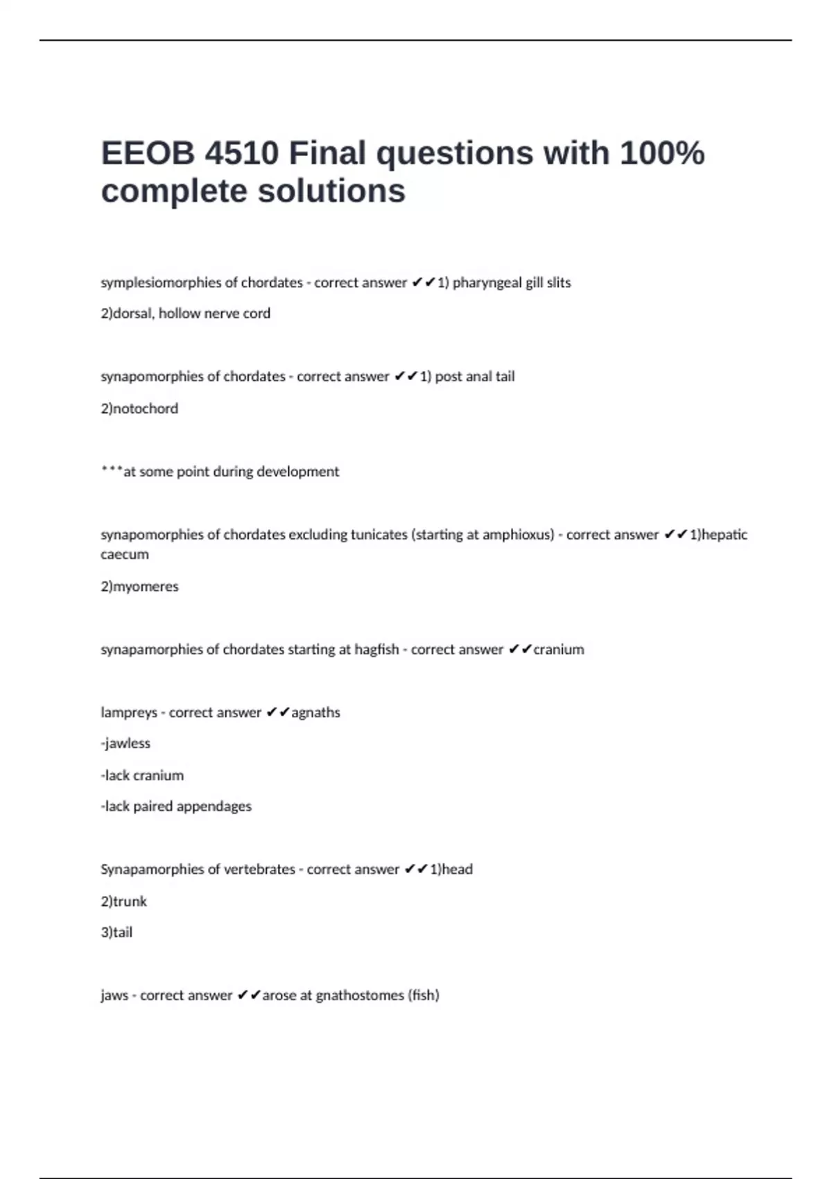Synapamorphies of vertebrates - correct answer ✔✔1)head