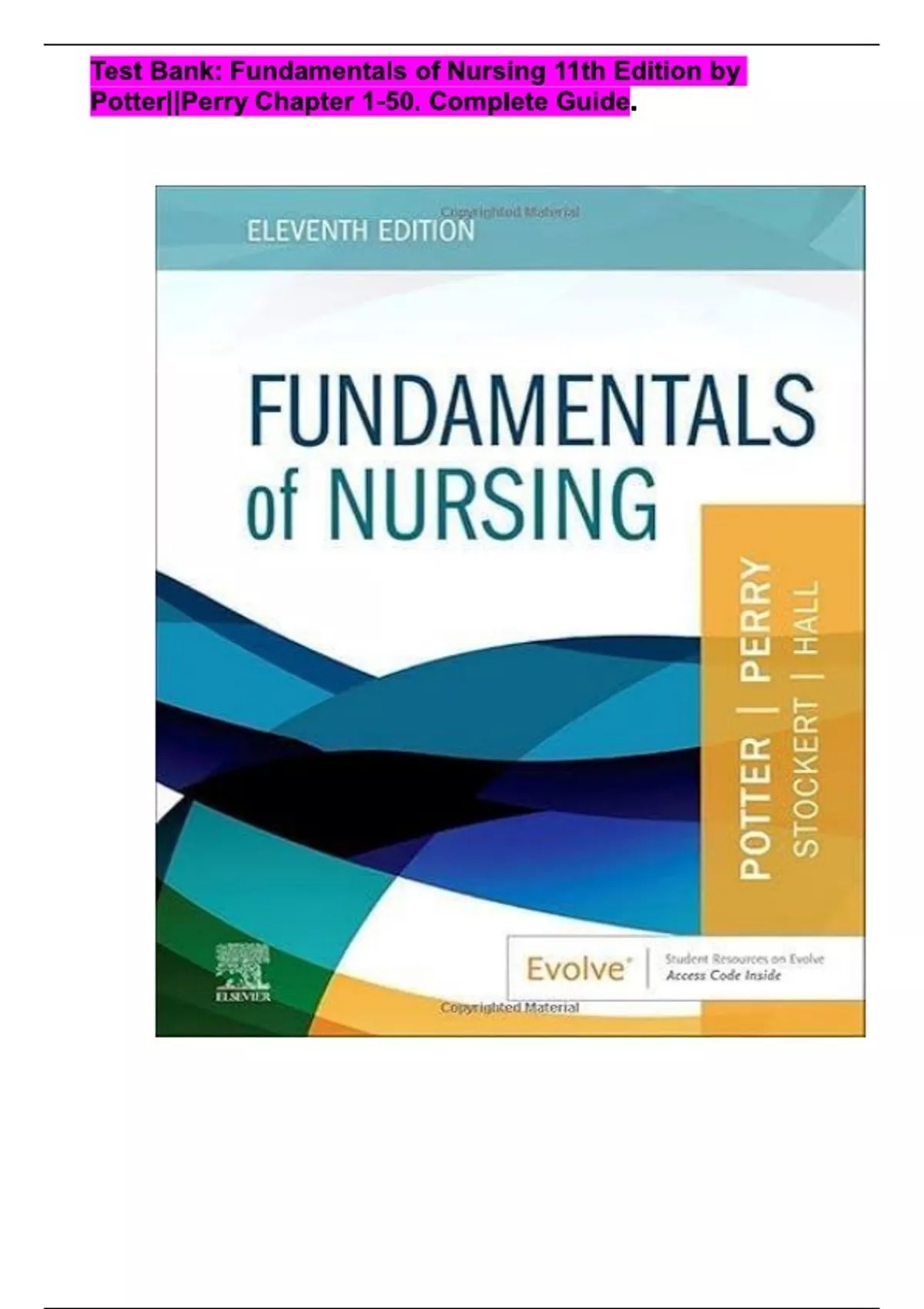 Test Bank: Fundamentals of Nursing 11th Edition by Potter||Perry Chapter 1-50. Complete Guide