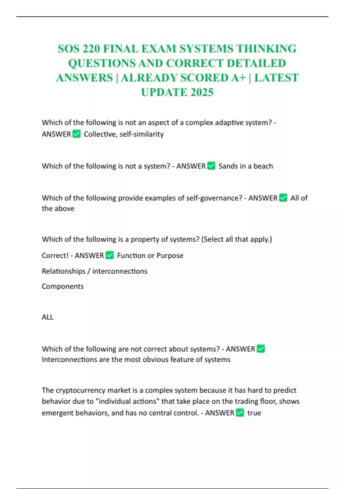 SOS 220 FINAL EXAM SYSTEMS THINKING