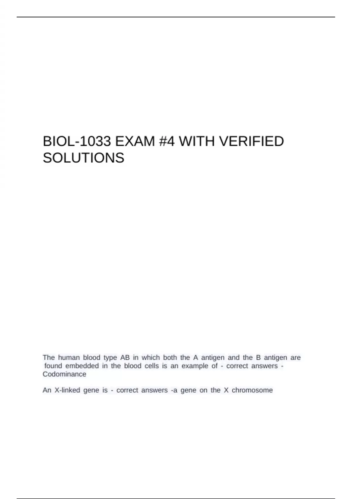 BIOL-1033 EXAM #4 WITH VERIFIED