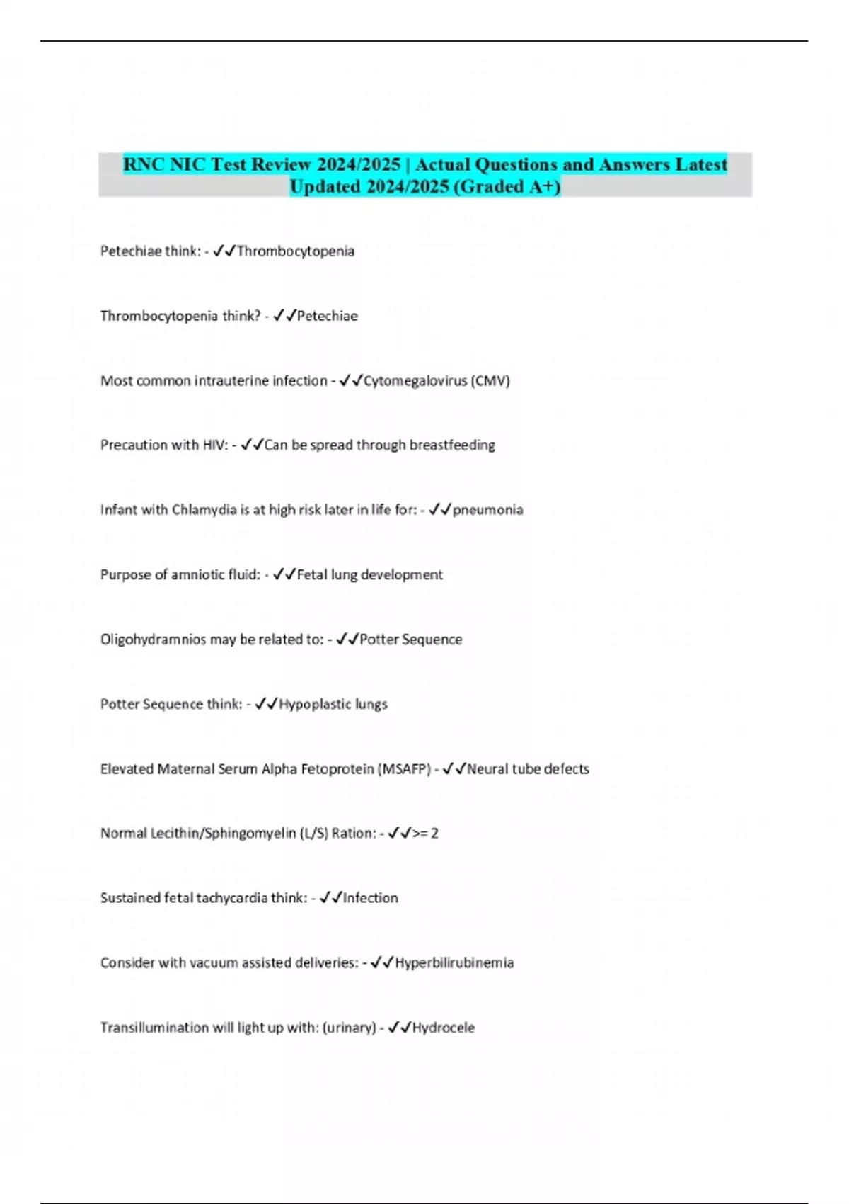 RNC NIC Test Review 2024/2025 | Actual Questions and Answers