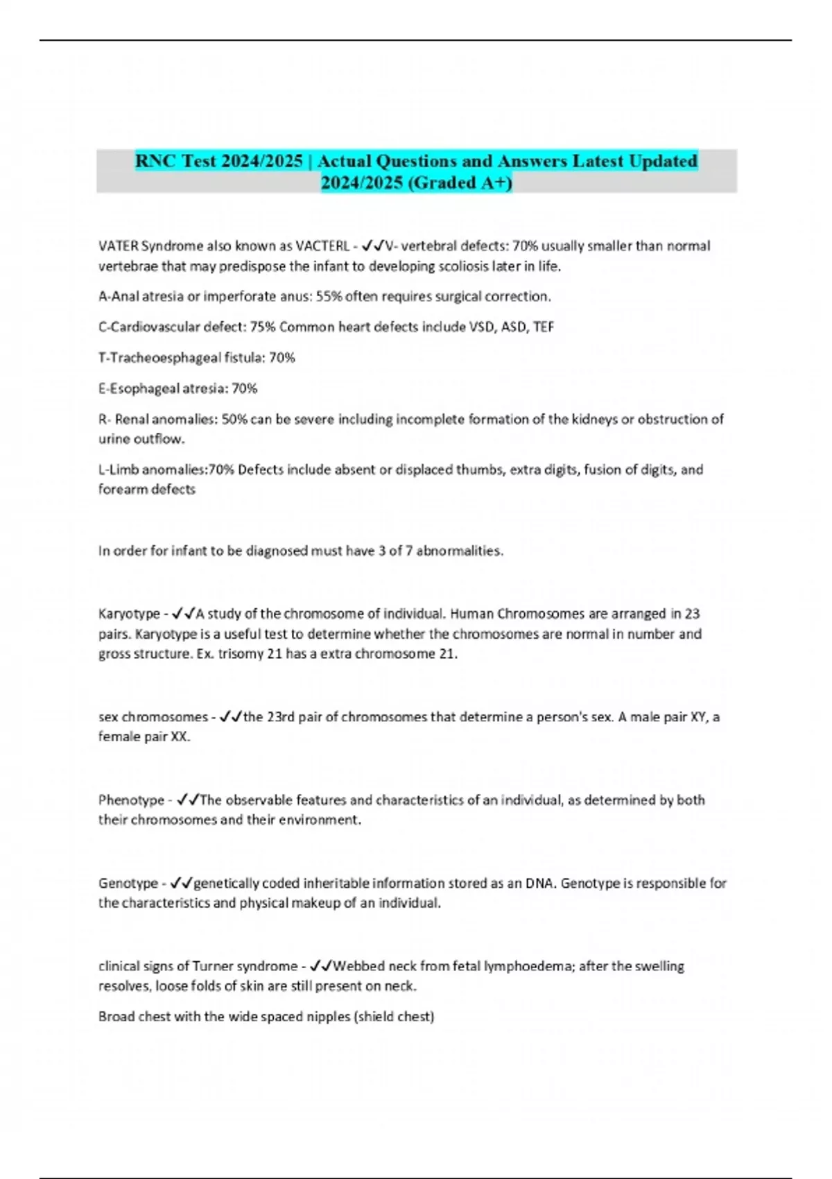 RNC Test 2024/2025 | Actual Questions and Answers