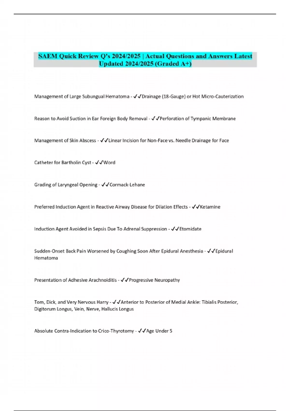 SAEM Quick Review Q's 2024/2025 | Actual Questions and Answers